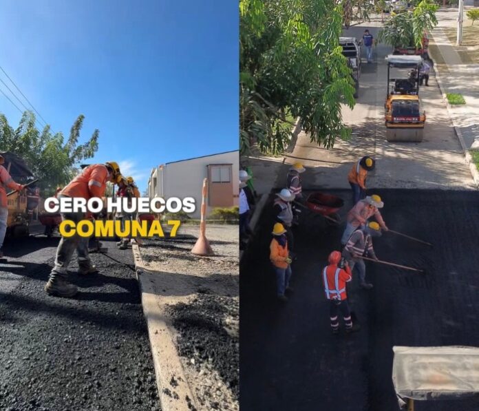 En esta oportunidad, los trabajos se desarrollan en la comuna 7, específicamente en la calle 30C con Av. Santa Ana, donde se adelantan intervenciones para optimizar la malla vial.