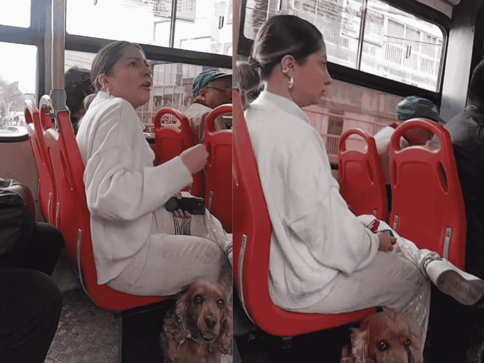 En redes sociales circula un video grabado dentro de un bus de servicio público, donde una mujer fue cuestionada por otros pasajeros por viajar acompañada de su perro.